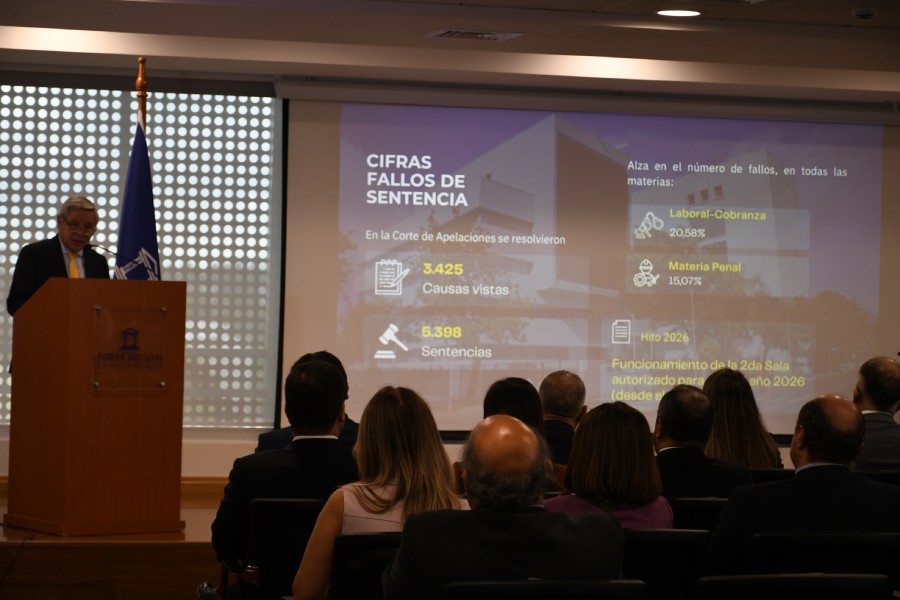 “La implementación de la segunda sala, sumada al compromiso de funcionarios y relatores, permitió ver un total de 3.425 causas, un 21,41% más que el año anterior. Este funcionamiento ya ha sido autorizado para todo el año judicial 2026, aunque es prioritario contar con una Segunda Sala de manera definitiva, anhelo compartido por todos y que esperamos se convierta en realidad en algún momento próximo”, destacó el ministro Arcos en su balance.