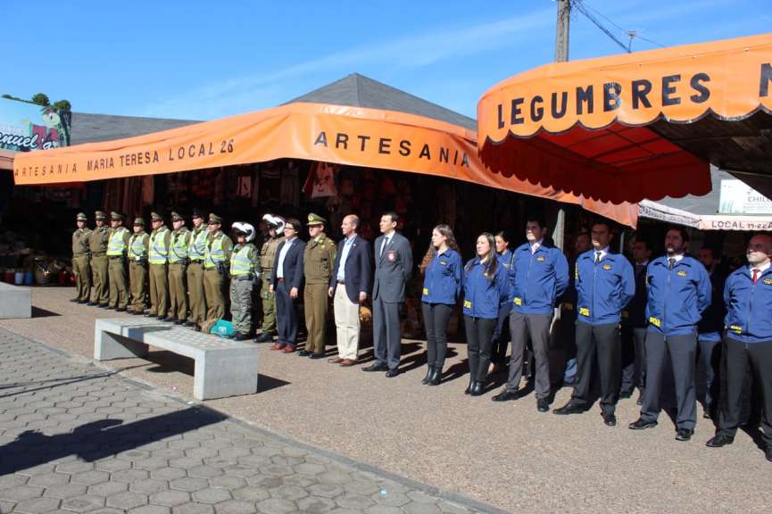 Hasta el Mercado Municipal de Chillán, llegó el Intendente Martín Arrau, acompañado del Coordinador Regional de Seguridad Pública, Alan Ibáñez; el Jefe de la XVI Zona de Carabineros, general Mario Sepúlveda y el Jefe de la Región Policial Ñuble, prefecto Marcelo Mendoza para a entregar los detalles regionales de esta iniciativa.