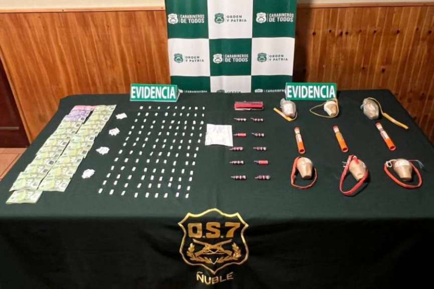 “Carabineros del OS7 intervino este inmueble, donde pudo incautar dosis de pasta base de cocaína, bombas pirotécnicas aéreas, fuegos artificiales y bengalas, sujetos a la Ley de Control de Armas y Explosivos. Además, cabe señalar que este mismo domicilio había sido intervenido en el año 2022 por el mismo ilícito”, explicó el Prefecto (s) de Ñuble, teniente coronel José Luis Villegas.