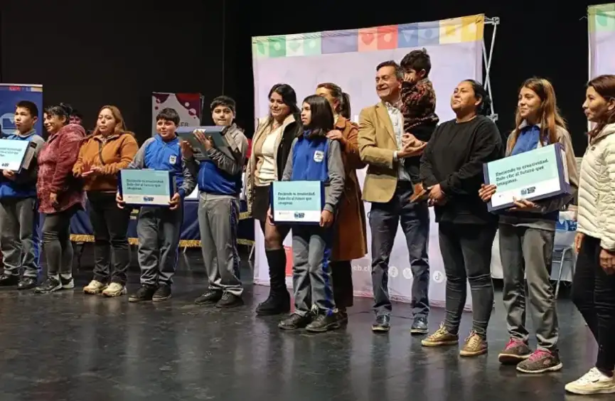 Este martes, en el Centro Cultural de San Carlos, se concretó la entrega de 411 computadores portátiles con conectividad a internet y software educativo, en el marco de la Beca TIC 2025 que ejecuta y financia la Junta Nacional de Auxilio Escolar y Becas (Junaeb).