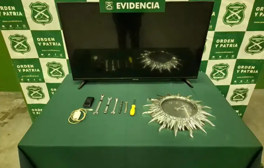 Sin embargo, el automóvil tenía GPS, por lo que Carabineros ubicó a los antisociales y los detuvo en el kilómetro 1,5 de la Ruta N-595. Al ser detenidos, el padre lanzó una pistola de fantasía adaptada para disparar a un canal de regadío, desde donde fue recuperada por la policía uniformada.