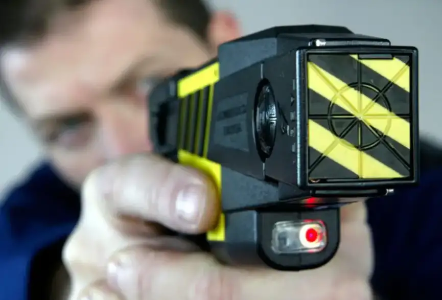 La pistola taser es un arma que, al activarla, dispara dos pinzas al cuerpo a una velocidad de alrededor de 175 km/h, infiriendo una descarga de alto voltaje que incapacita a nivel neuromuscular a la persona objetivo.