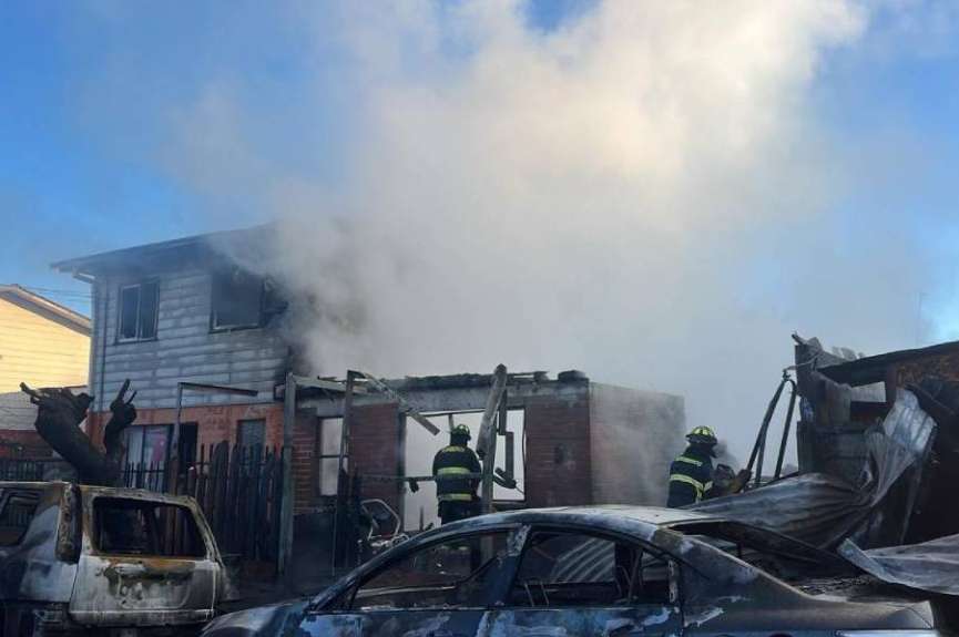 La emergencia movilizó a voluntarios de las cuatro compañías del Cuerpo de Bomberos de Quillón, quienes acudieron rápidamente tras la alerta de los vecinos. A pesar del trabajo intenso, las llamas alcanzaron con fuerza varias estructuras y vehículos, dificultando el control del fuego.