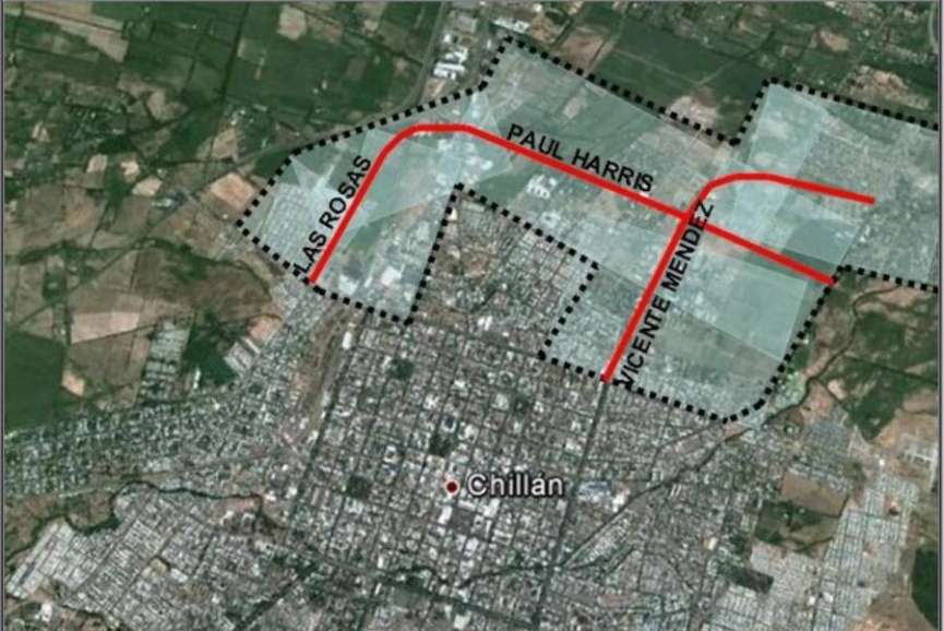 El proyecto posee una longitud total aproximada de 8 km, de los cuales 3 km, corresponden a la Avenida Vicente Méndez, 4 km. a la Avenida Paul Harris (sector oriente y poniente) y de 1 km a la calle Las Rosas, todas en el sector norte de la ciudad de Chillán. La intervención incluirá doble calzada paseos peatonales y ciclovías de alto estándar en todo el trazado.