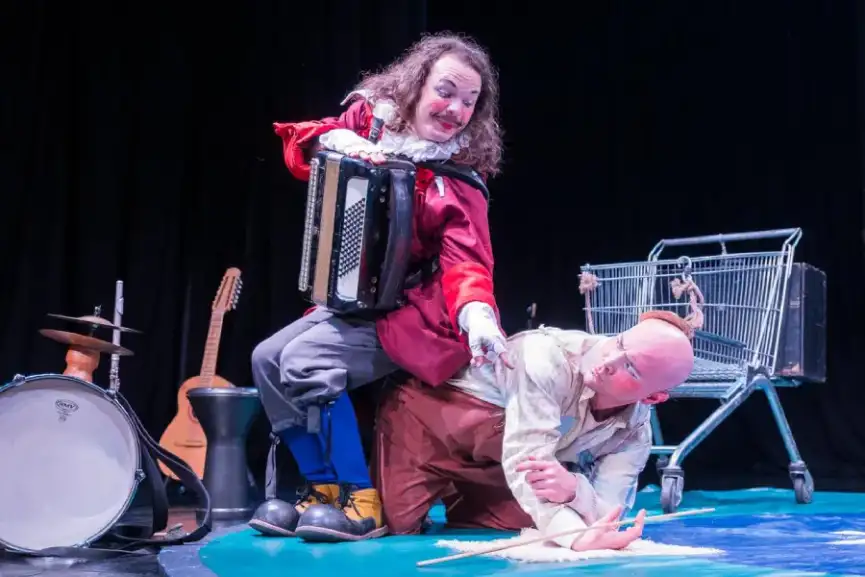 Esta presentación cuenta con el financiamiento del Programa de Apoyo a Organizaciones Culturales Colaboradoras del Ministerio de las Culturas. La obra, protagonizada por Martín Feuerhake y Diego Chamorro, combina teatro, música en vivo, acrobacia y humor.