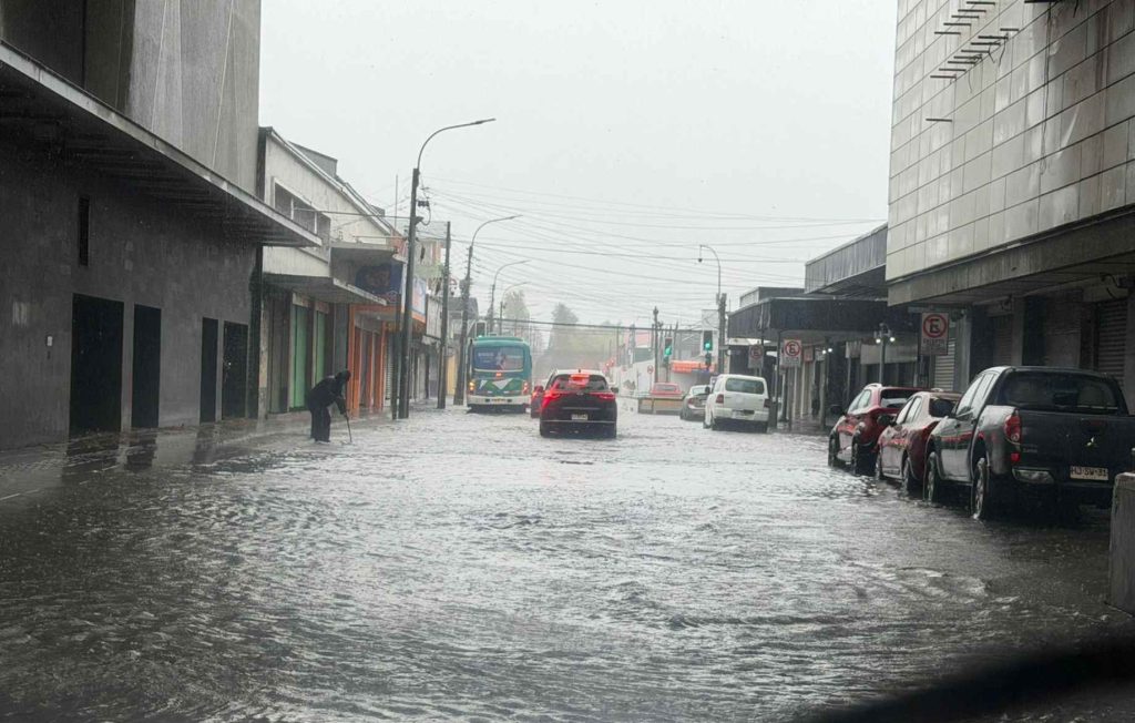 De acuerdo con información de la Municipalidad de Chillán, en cerca de doce horas cayeron entre 55 y 60 milímetros de lluvia, lo que generó anegamientos en diversas calles y sectores residenciales de la comuna.