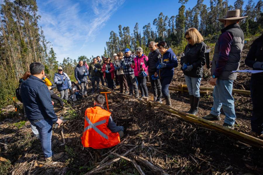 La plantación comunitaria se realizó bajo la línea de trabajo de conservación ex situ de Campus Naturaleza UdeC, que busca resguardar diversidad genética de especies nativas clave.