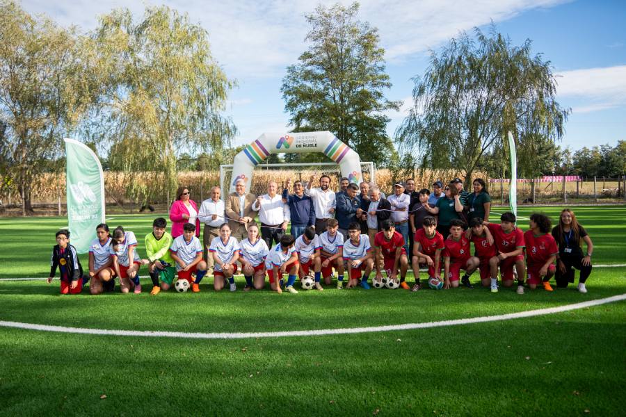 Posteriormente, las autoridades se trasladaron al sector Calle Alegre para inaugurar la reposición de la cancha de fútbol, una de las 21 canchas de pasto sintético impulsadas por el Gobierno Regional para Ñuble. Con una inversión de más de $393 millones, el proyecto transformó un antiguo campo de tierra en un recinto moderno que cuenta con pasto sintético de alta calidad.