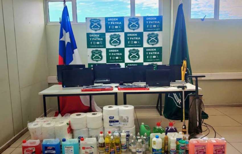 Con la oportuna denuncia recibida esta mañana, y tras diversas diligencias indagatorias, Carabineros de la Sección de Investigación Policial de la 1a. Comisaría San Carlos logró recuperar gran parte de los artículos robados desde la escuela rural El Torréon.