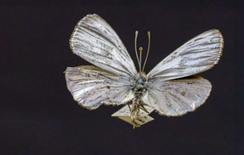 Un brillo metálico llama la atención entre los pasillos del Museo de Zoología de la Universidad de Concepción (MZUC) cuando se abre la vitrina que guarda los cerca de 100 ejemplares de la única mariposa plateada del mundo.