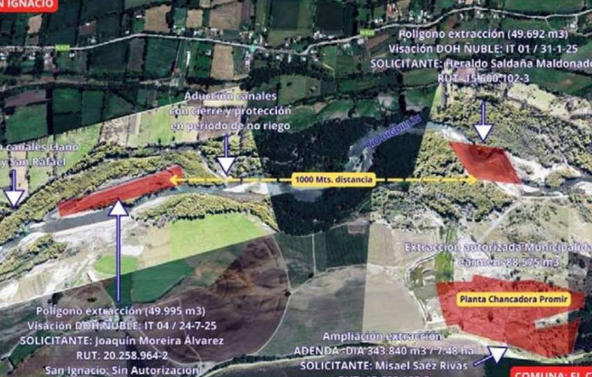 Los regantes del río Diguillín alertaron sobre severos perjuicios en el cauce natural y en las bocatomas debido la autorización de faenas de extracción de áridos en el sector Santa Juana, aguas arriba del Puente Urrutia, comuna de San Ignacio, cuyo límite con El Carmen es el eje del río. Asimismo, denunciaron el uso de…